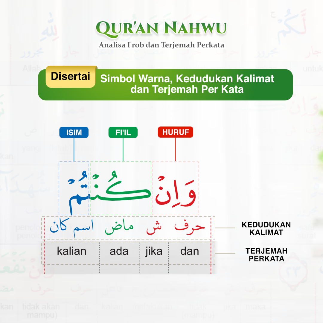 – Nahwu Warna = Setiap ayat ditulis dengan warna khusus untuk membedakan antara kalimat isim, fi’il dan huruf